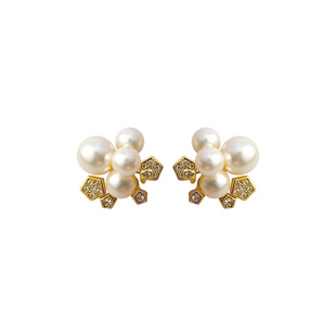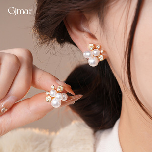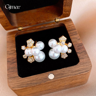 SHINE萱子饰品小金豆耳环珍珠耳钉女银针设计感爆款 生日礼物