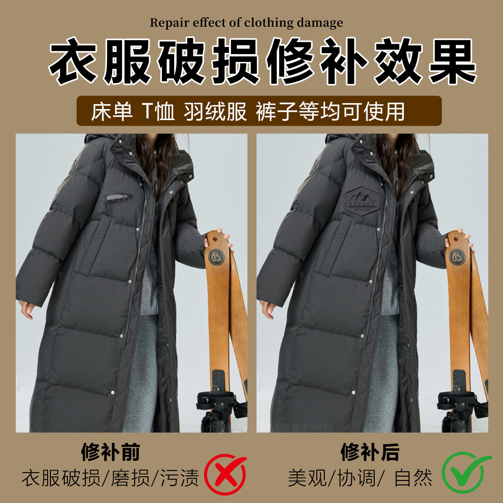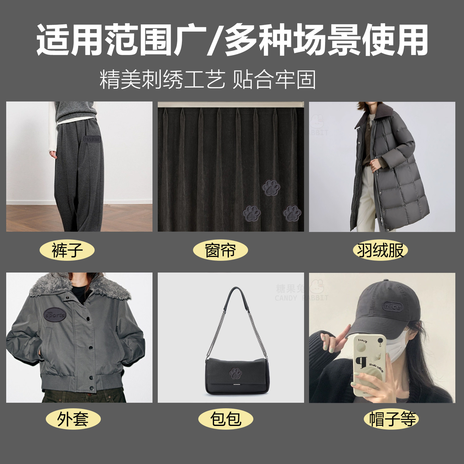 深灰色刺绣补丁贴高级自粘羽绒服免缝修补贴破洞修复衣服布贴纯色