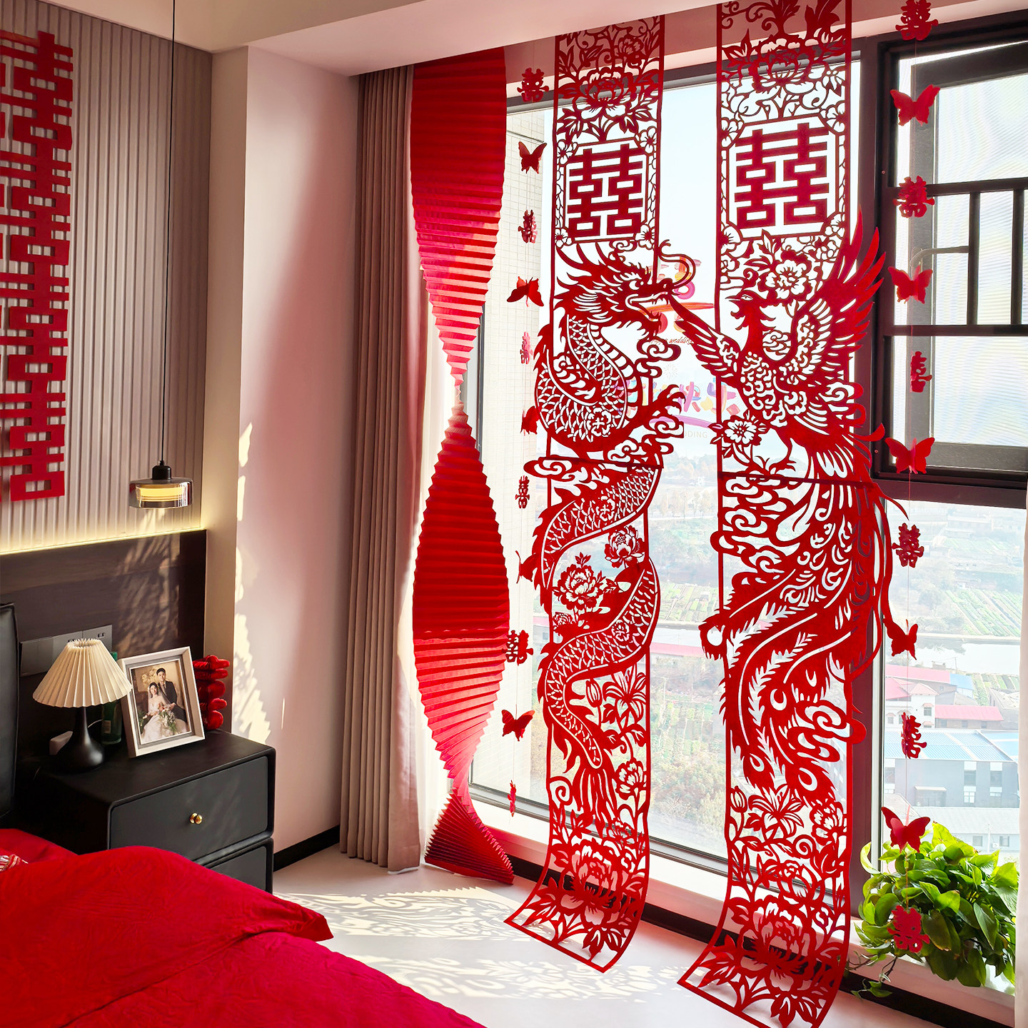婚房布置套装 饰长条喜字新房飘窗卧室结婚礼蝴蝶拉花男女方 窗帘装