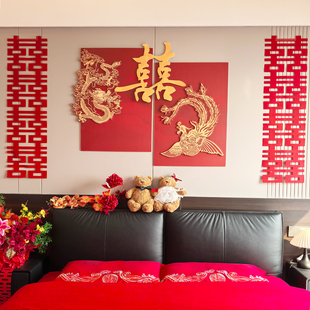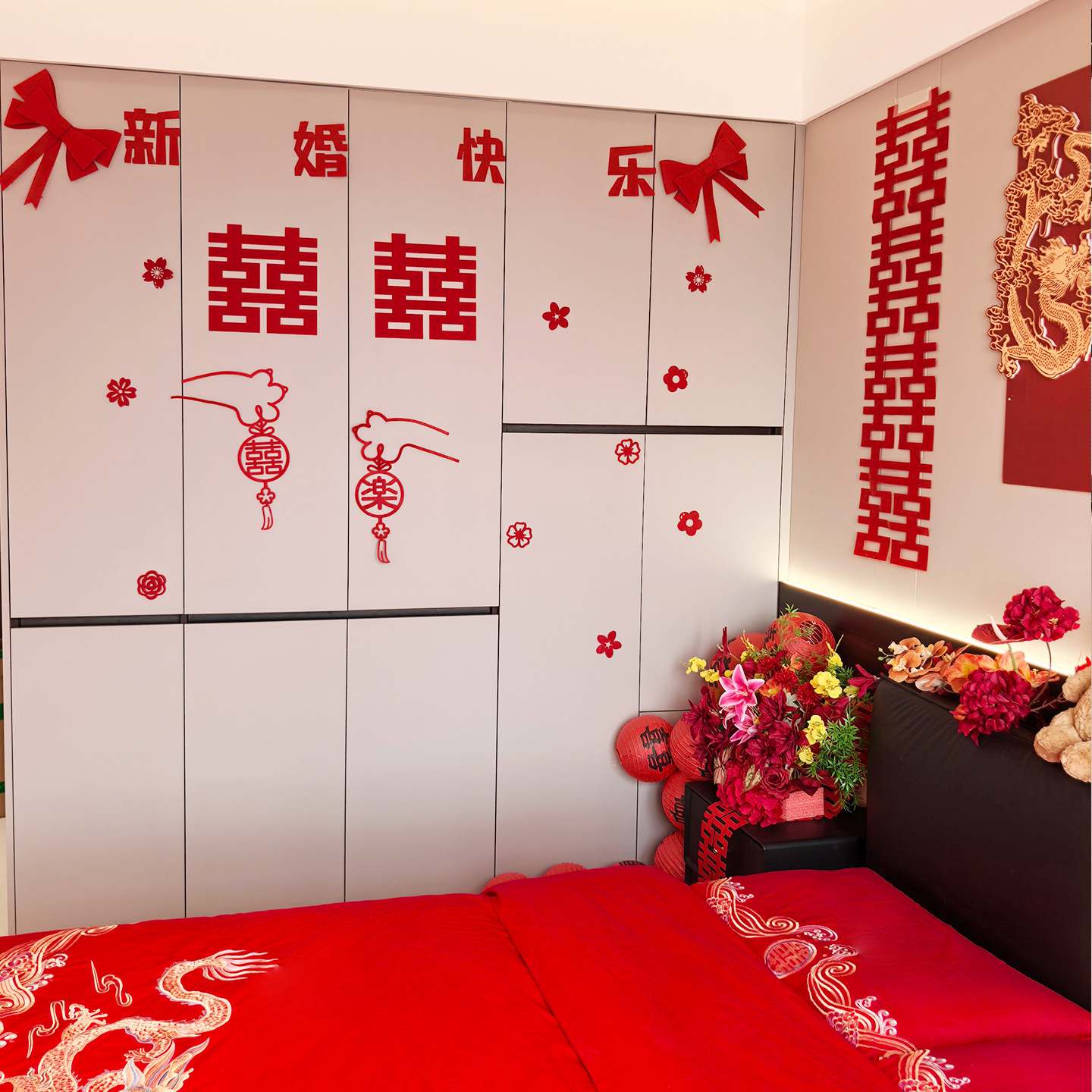 婚房布置套装 饰拉花 结婚男方女方高级感新房床头喜字背景墙婚礼装