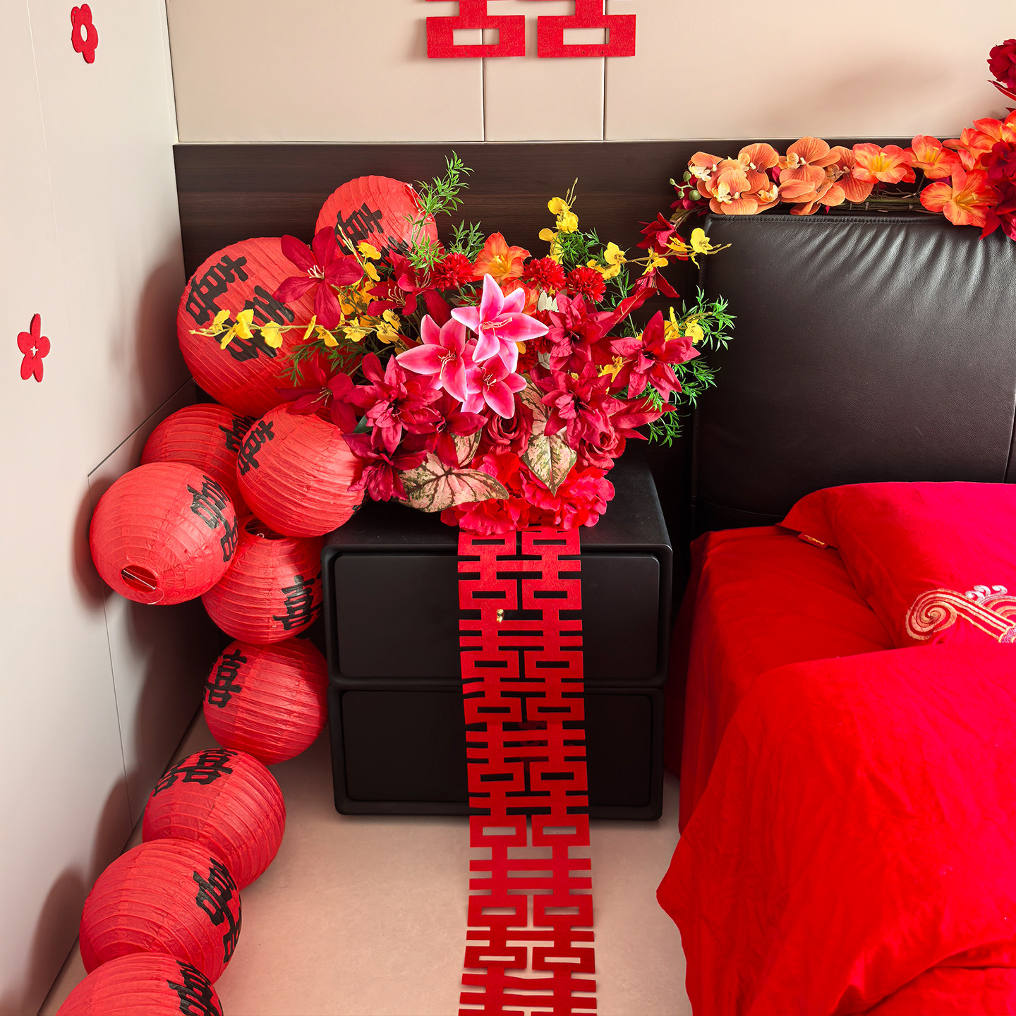婚房氛围感布置结婚套装 饰婚礼喜字女方卧室床头背景墙 全套拉花装