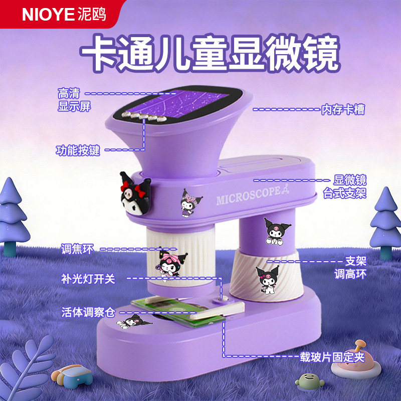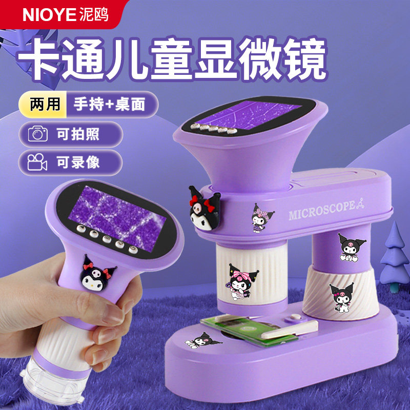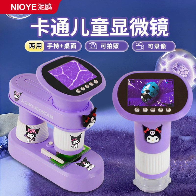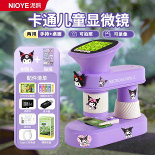 儿童显微镜库洛米玩具专业级可看细菌男童女孩子幼儿园卡通大屏便携式 电子显微镜中小学生专用儿童生日礼物