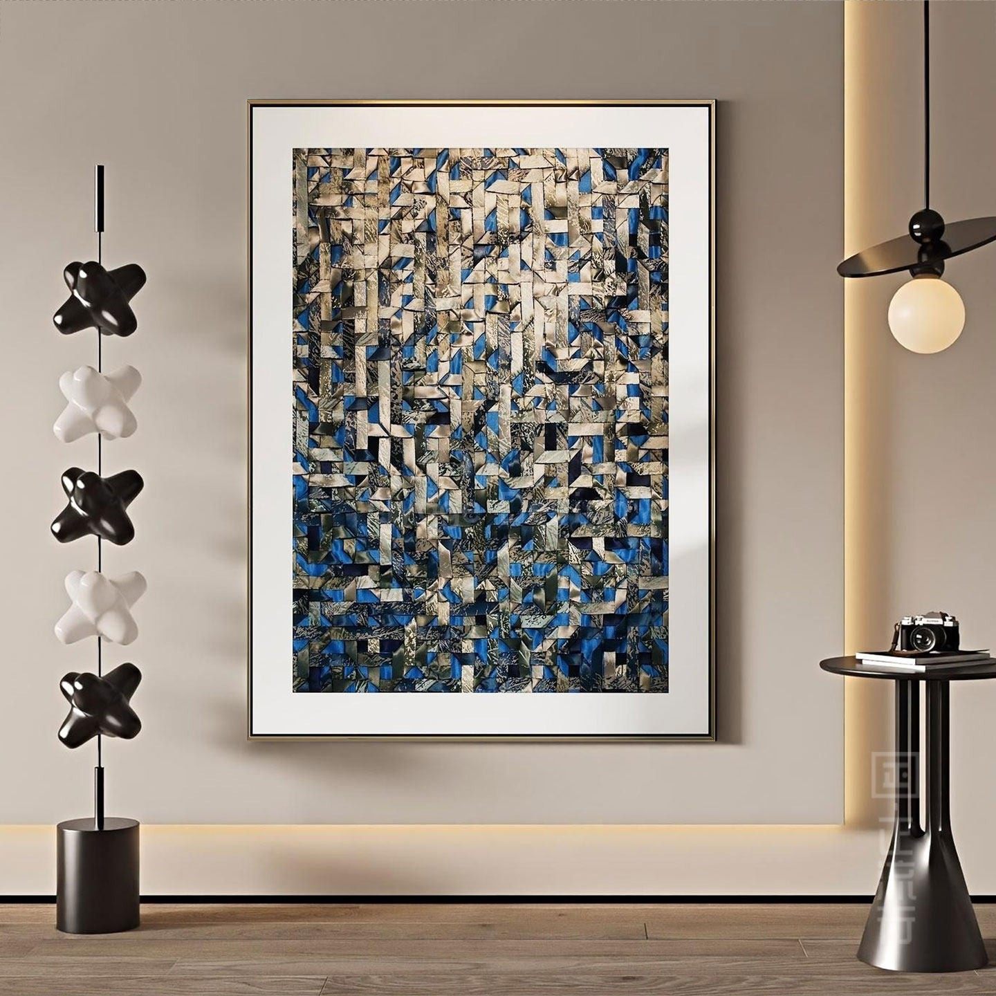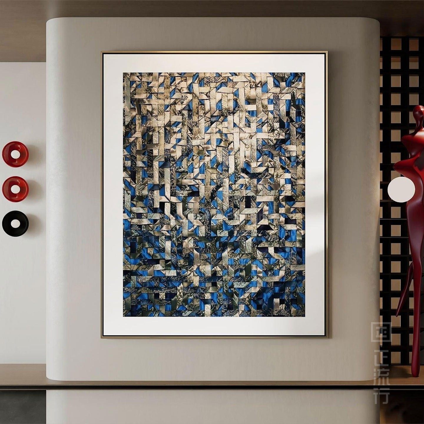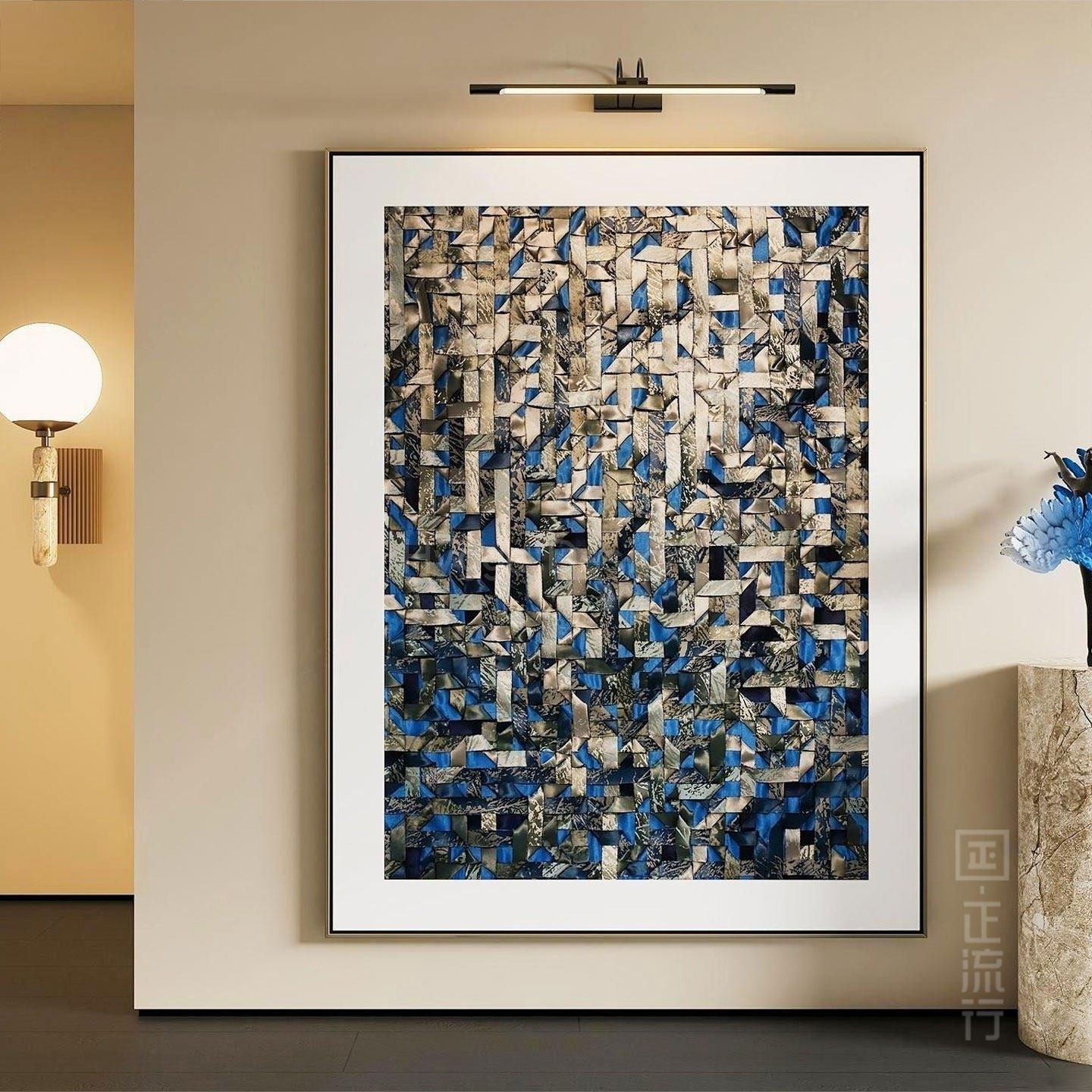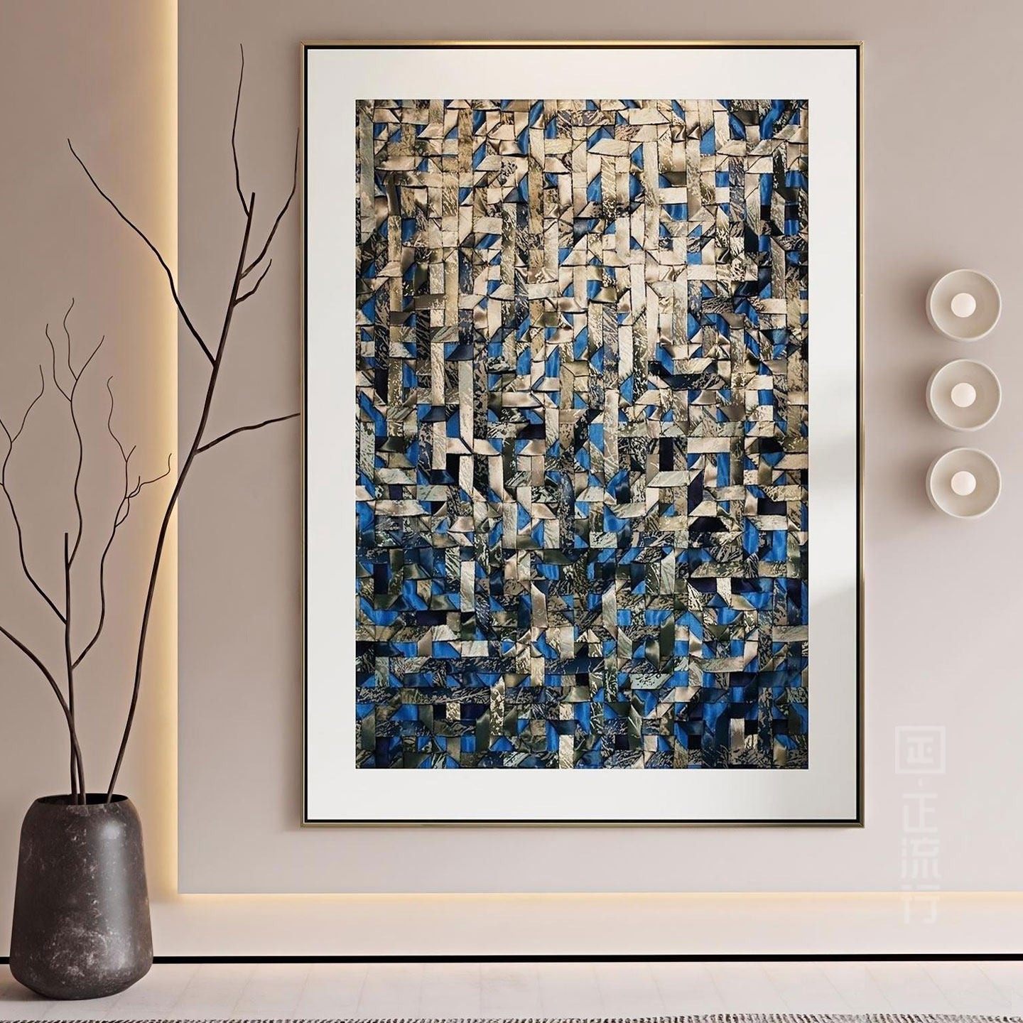 轻奢客厅装 高级酒店样板间挂画 饰画沙发背景墙壁画抽象编织感意式