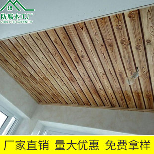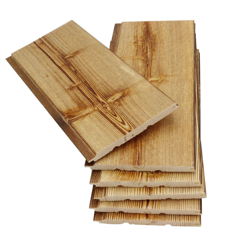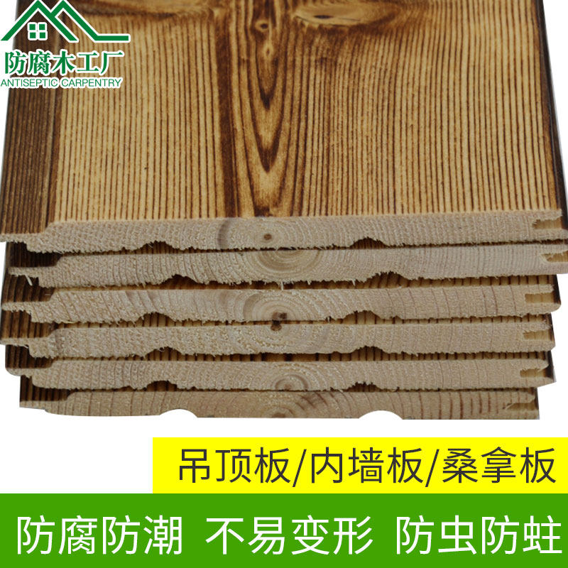 浅碳化拉丝扣板阳台吊顶墙裙护墙板复古木纹免漆樟子松实木桑拿板