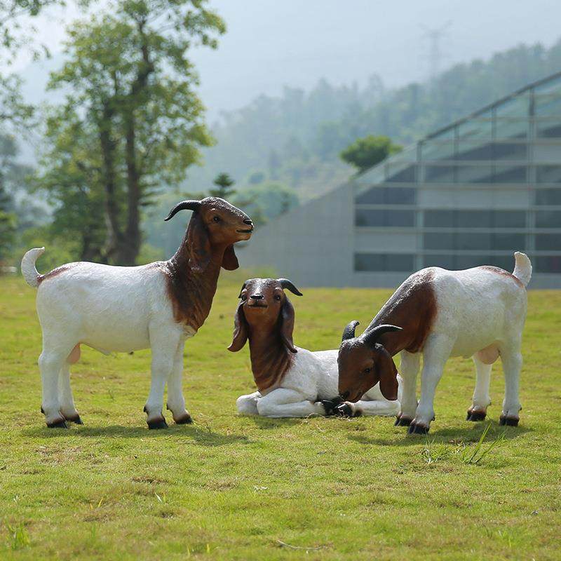 仿真波尔羊雕塑户外玻璃钢园林庭院景区景观草坪美陈装 饰品摆件