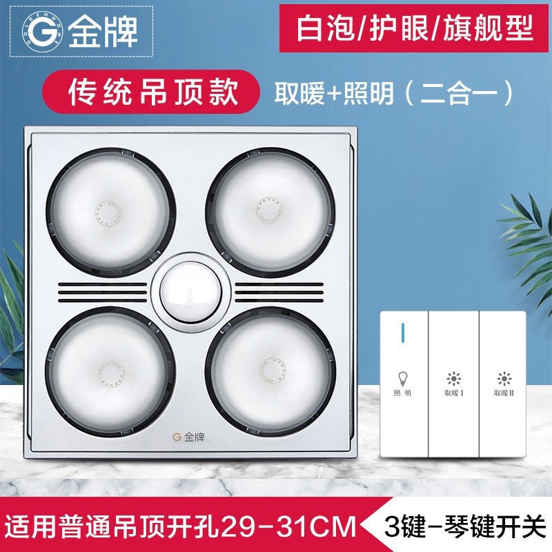 金牌灯暖浴霸老式 壁挂三合一顶 取暖灯泡集成吊卫生间浴室嵌入式