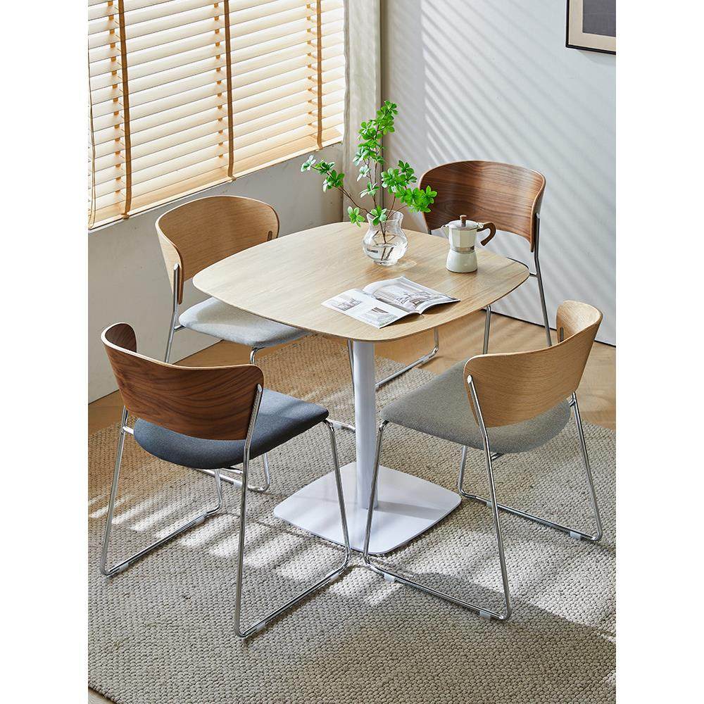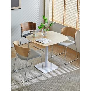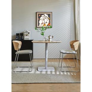 木小咖现代简约实木餐桌维亚圆桌家用小户型中古洞石岩板桌椅组合