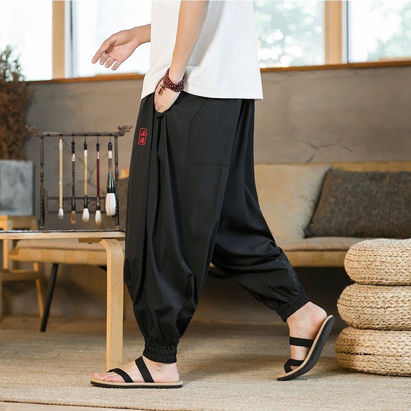 冰丝裤 中国风大码 裤 休闲裤 束脚灯笼裤 薄款 子潮牌宽松哈伦裤 男夏季