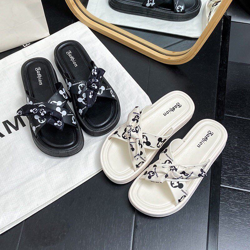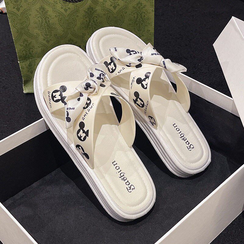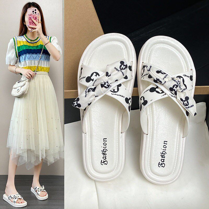 百搭女士平底防滑卡通外穿女学生一字凉拖鞋 夏季 女新款 蝴蝶结拖鞋