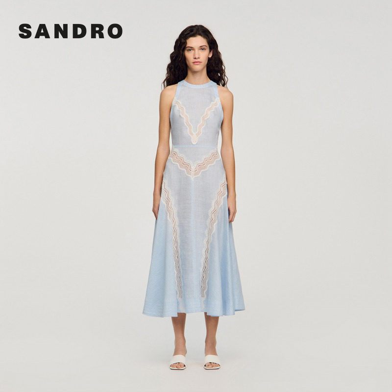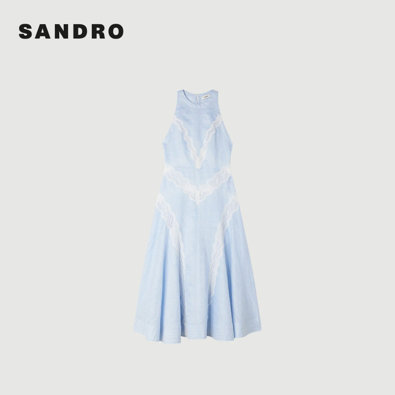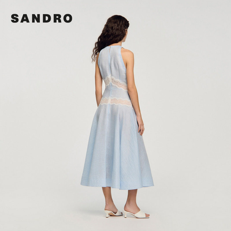 新款 挂脖领收腰蕾丝花边长款 女装 时尚 连衣裙 法式 SANDRO2026春季