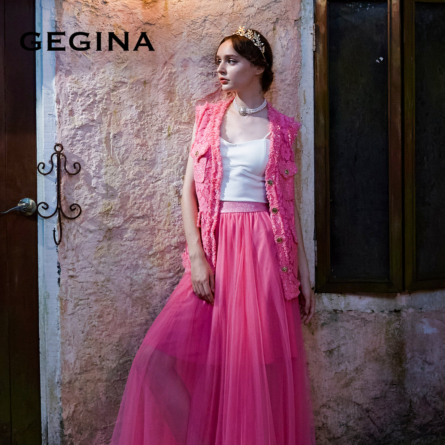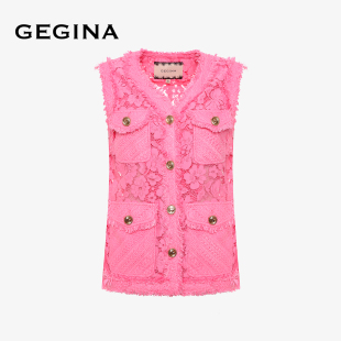 马甲外套镂空柔美气质外套 粉红色蕾丝无袖 GEGINA吉吉娜早春季 新品