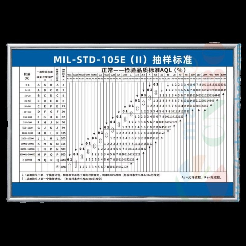 STD 正常检验一次抽样方案AQL 105E 抽样标准 上墙标识牌 MIL