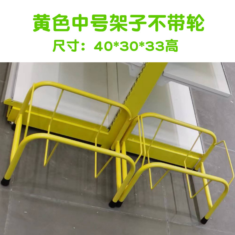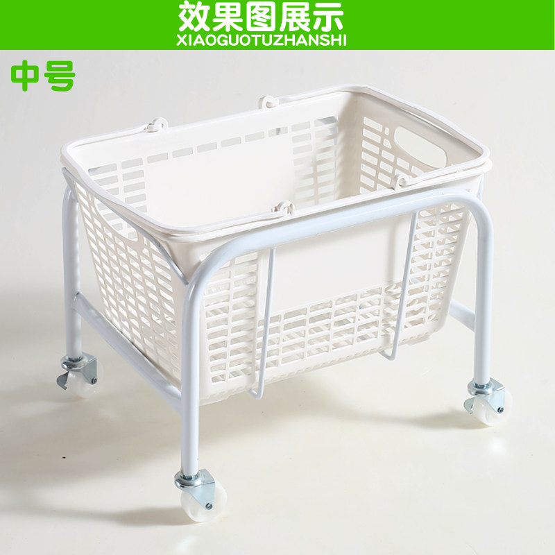 白色便利店购物篮托架带轮移动手提篮底座车黄色S购物篮存放车架