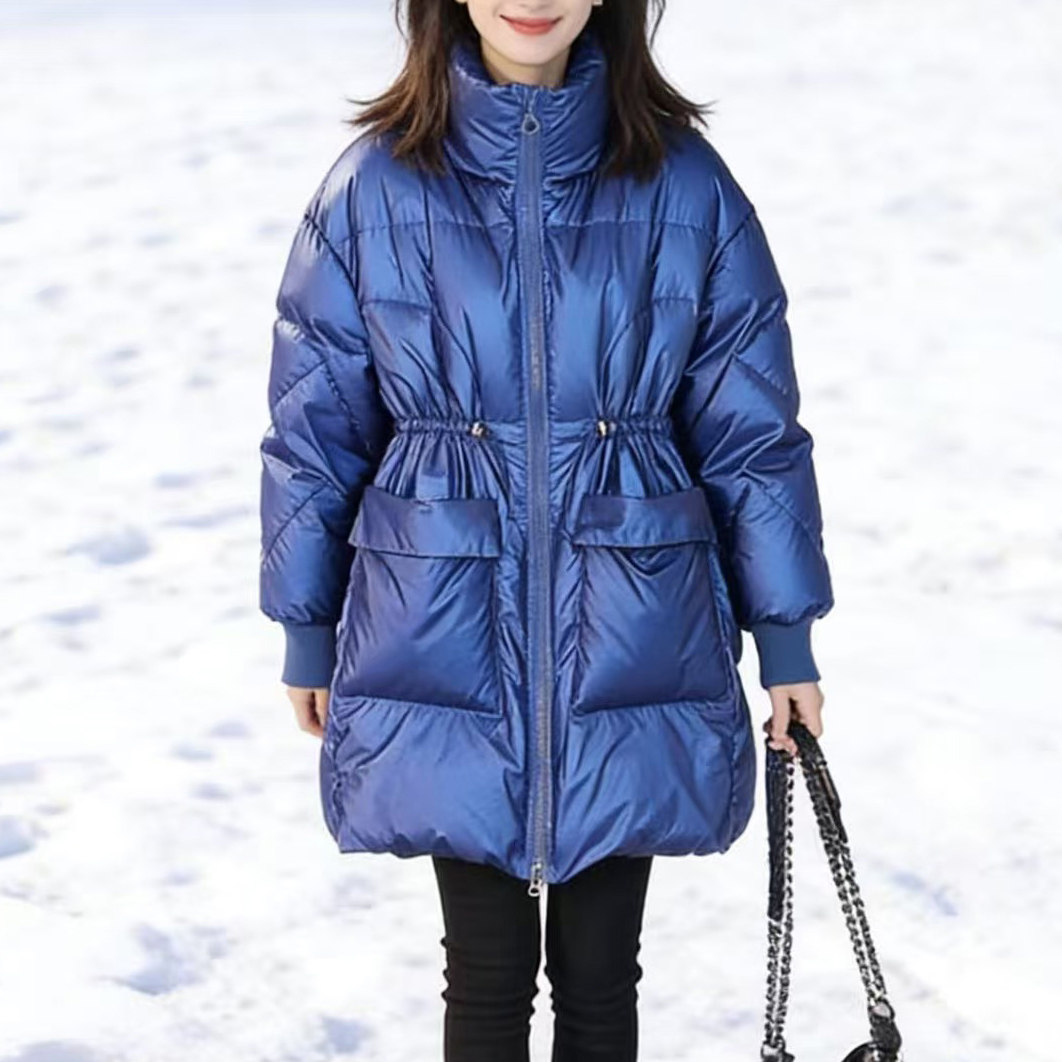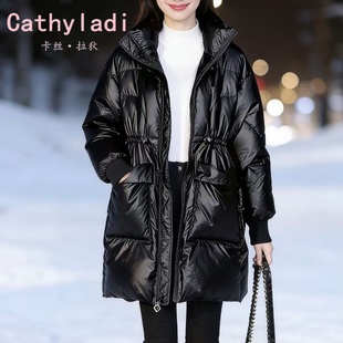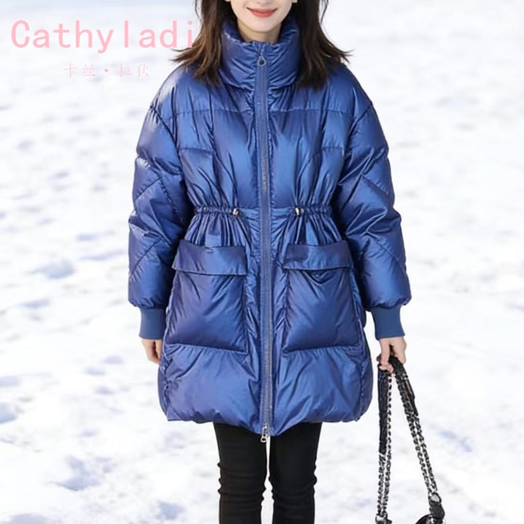 CATHYLADI宝石蓝亮面加厚羽绒服女2025冬季 宽松显瘦外套潮 中长款