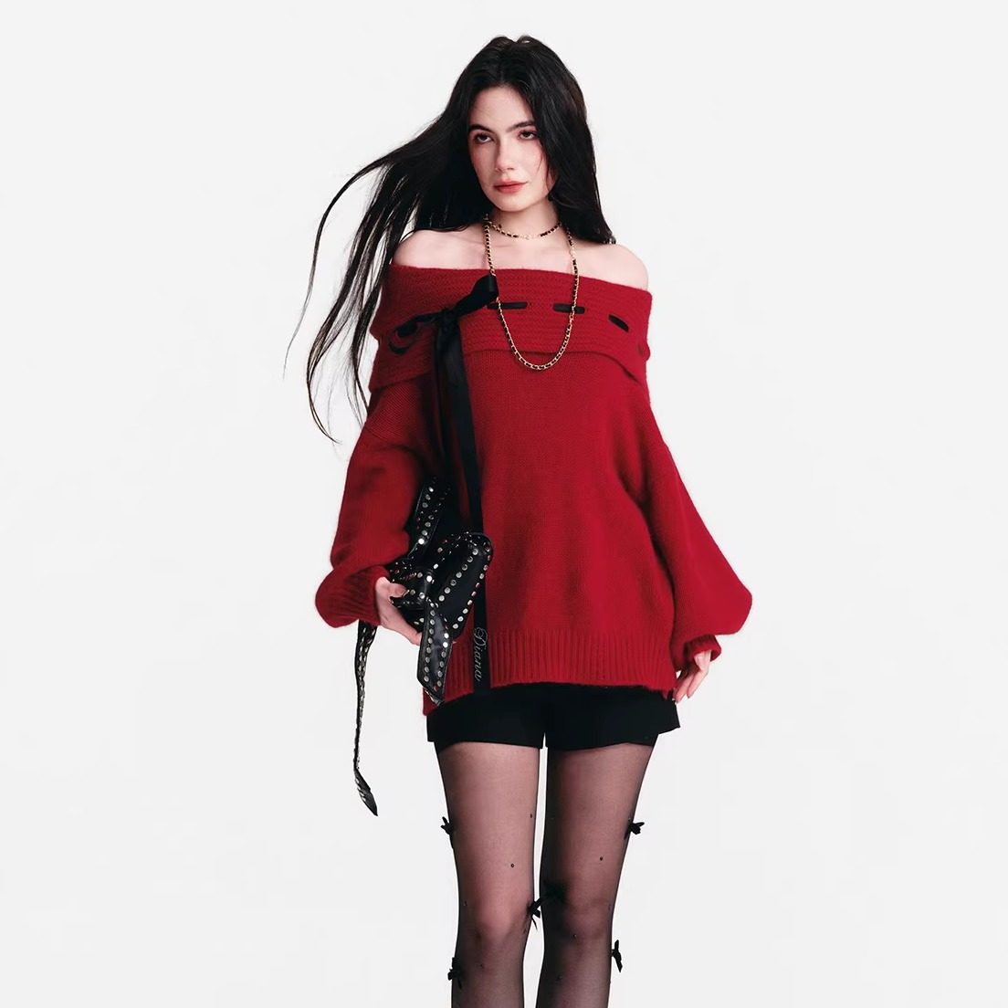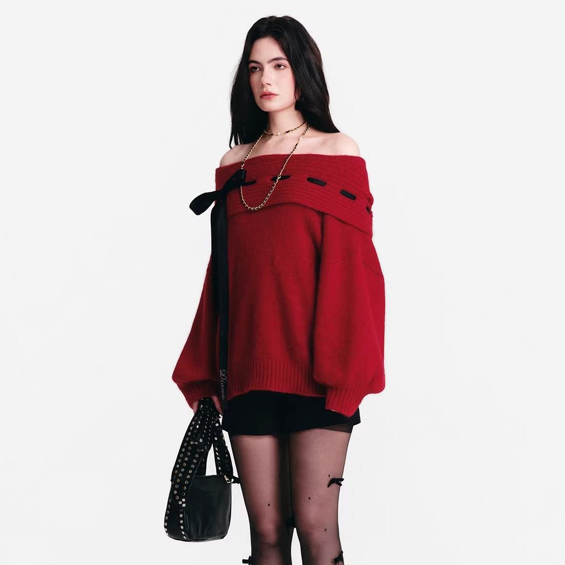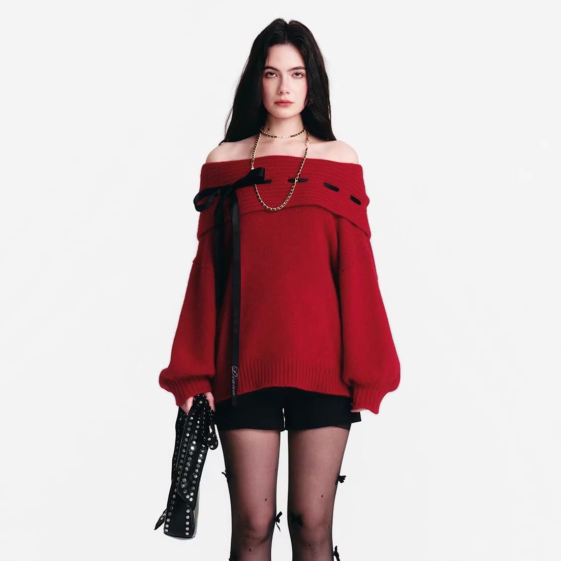 连帽一字肩宽松毛衣 25AW Diana Vevina