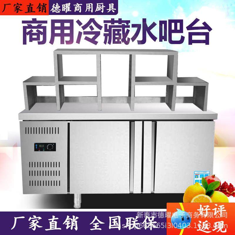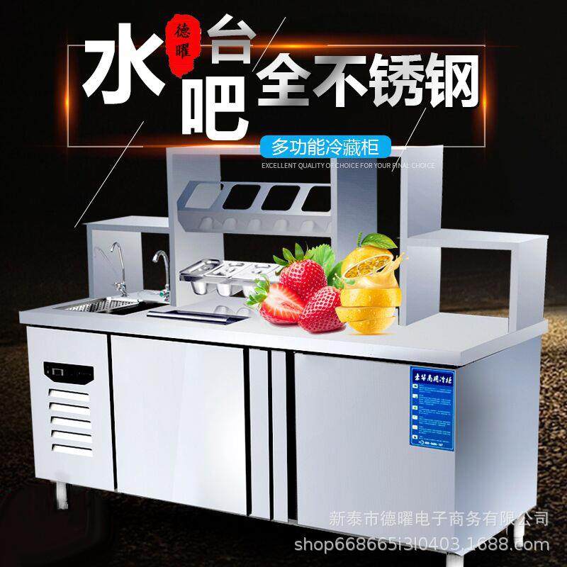 奶茶店全套设备水吧台商用制冷工作台不锈钢大容量保鲜冷藏冷冻柜