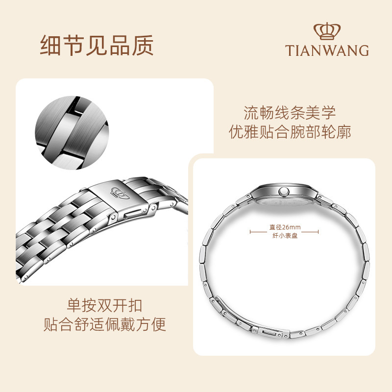 天王简约女士石英手表女款 轻奢小众生日礼物女生腕表礼盒3626