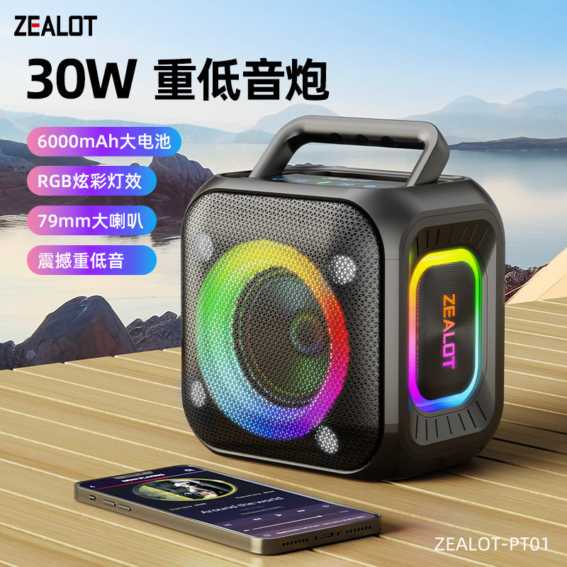 zealot PT01蓝牙音箱30W大音量便携户外防水小音响高音质超重低音