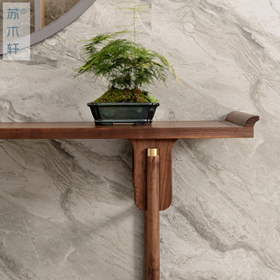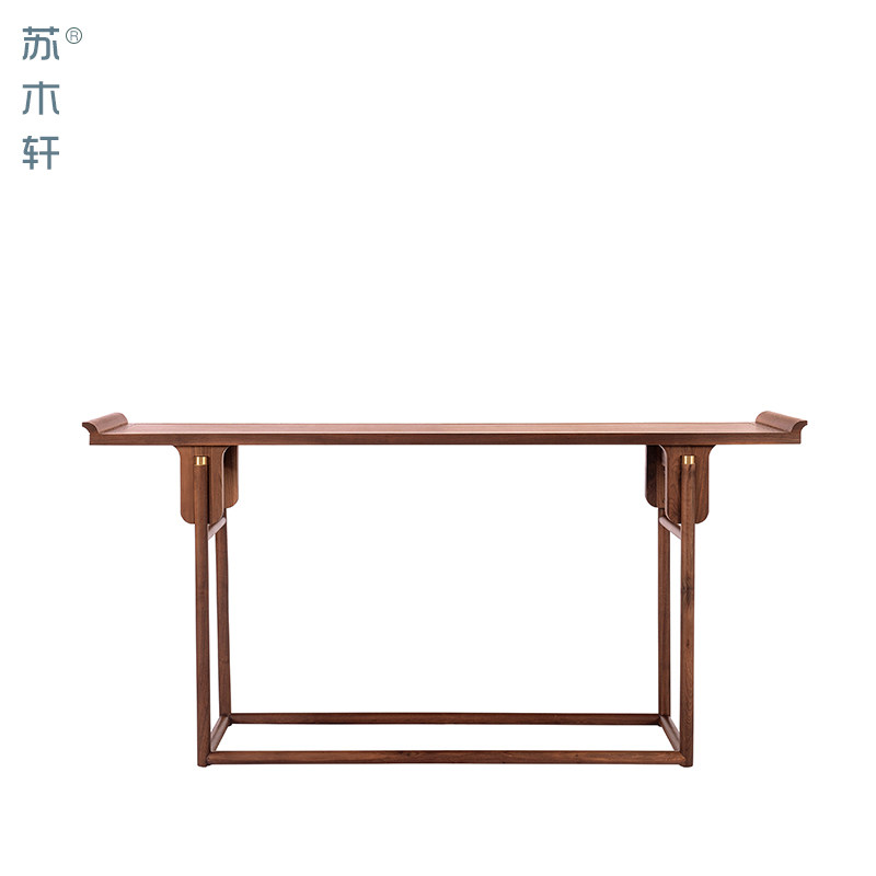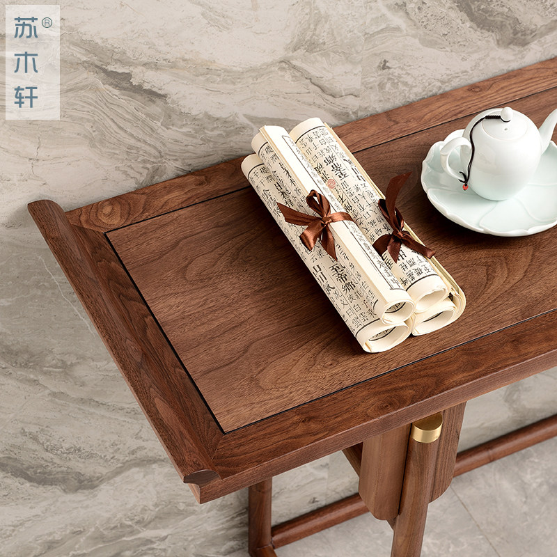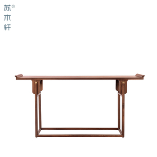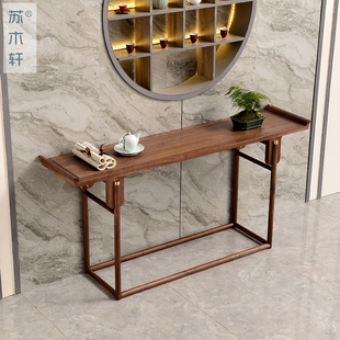 苏木轩新中式 靠墙实木翘头玄关桌禅意入户玄关台 黑胡桃木条案新款