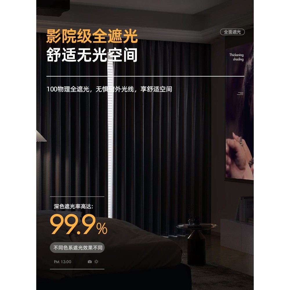 窗帘全遮光卧室强隔音免打孔安装 飘窗高级感遮阳布定制 杆2025新款