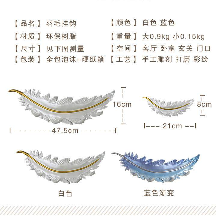 轻奢北欧挂钩创意羽毛挂衣钩钥匙架壁挂玄关门口装 饰免打孔衣帽钩