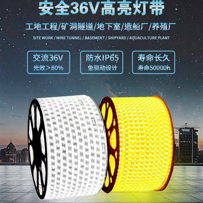 36v灯带led工地超亮防水户外隧道低压24v建筑地下室照明220伏高级