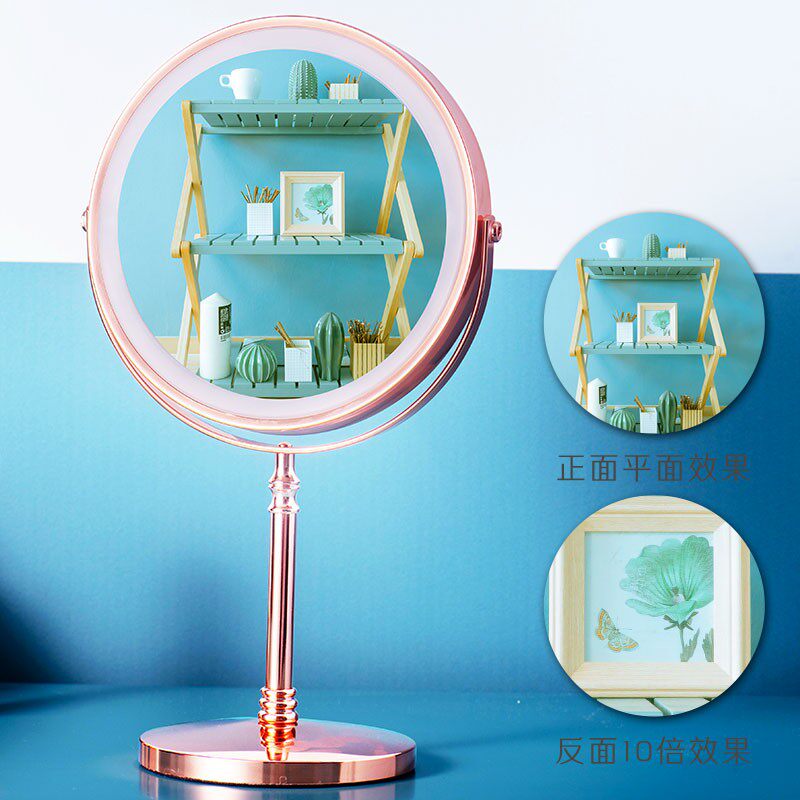 led双面镜子10倍放大化妆镜台式 桌面带灯十倍黑头梳妆便携金属镜