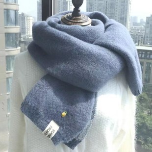 韩版 加工定制百搭加厚保暖学生毛线围脖 纯色针织围巾女秋冬款