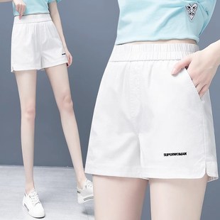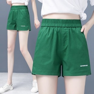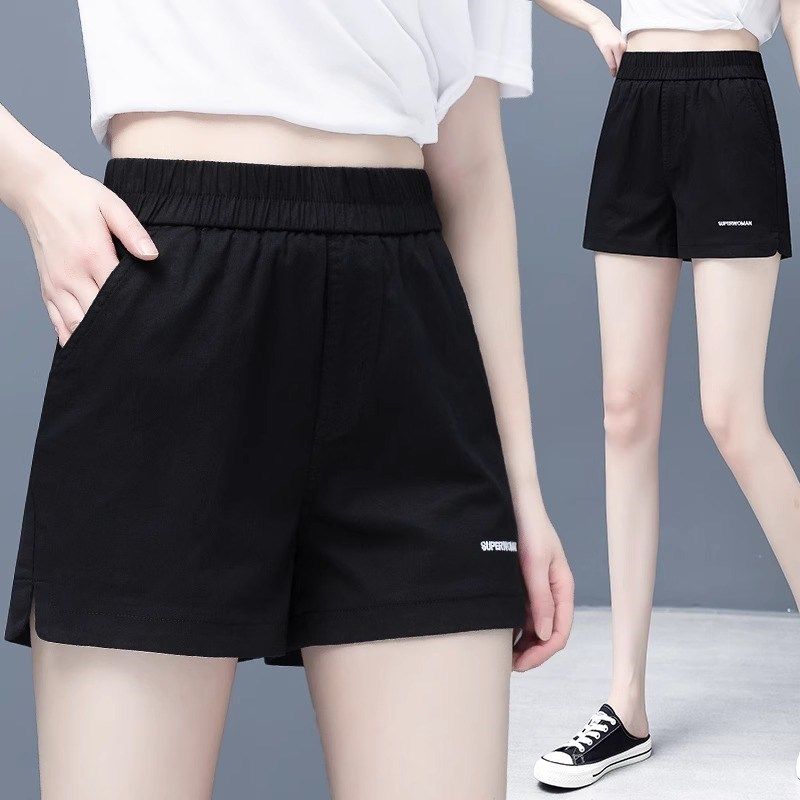 夏季 纯棉宽松显瘦阔腿热裤 女2024新款 弹性休闲裤 松紧高腰薄款 短裤