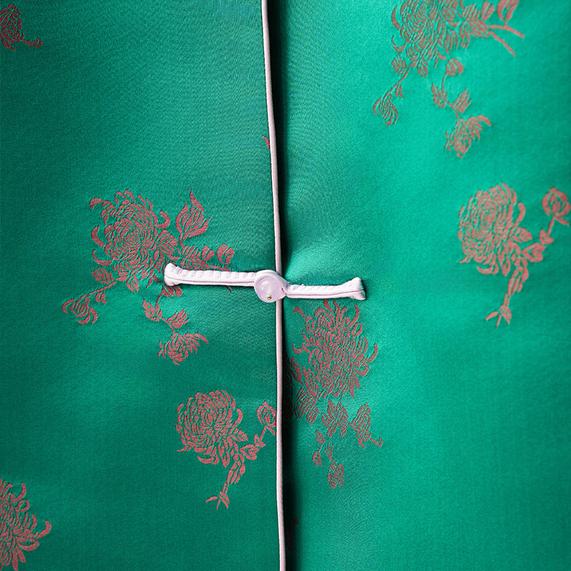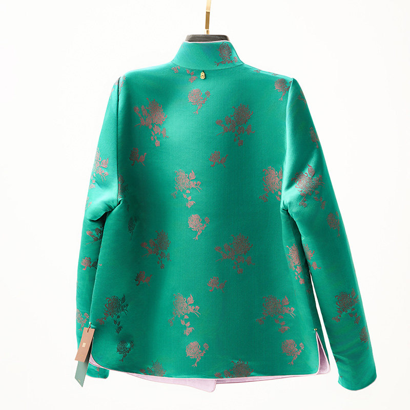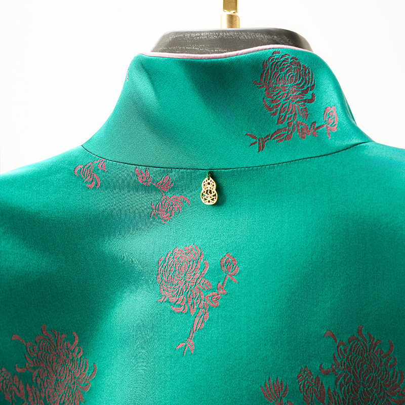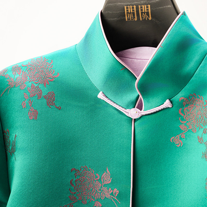 门里门外绿色小菊花真丝库缎立领外套BC25QS0082A