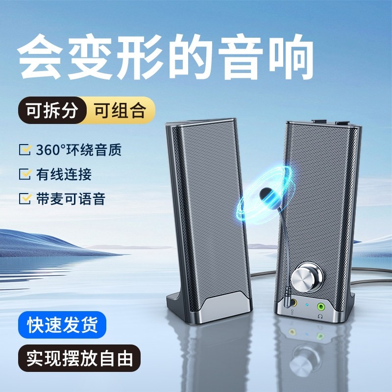 台式 电脑音响家用桌面一体小音箱公有线蓝牙重低音炮笔记本带麦办