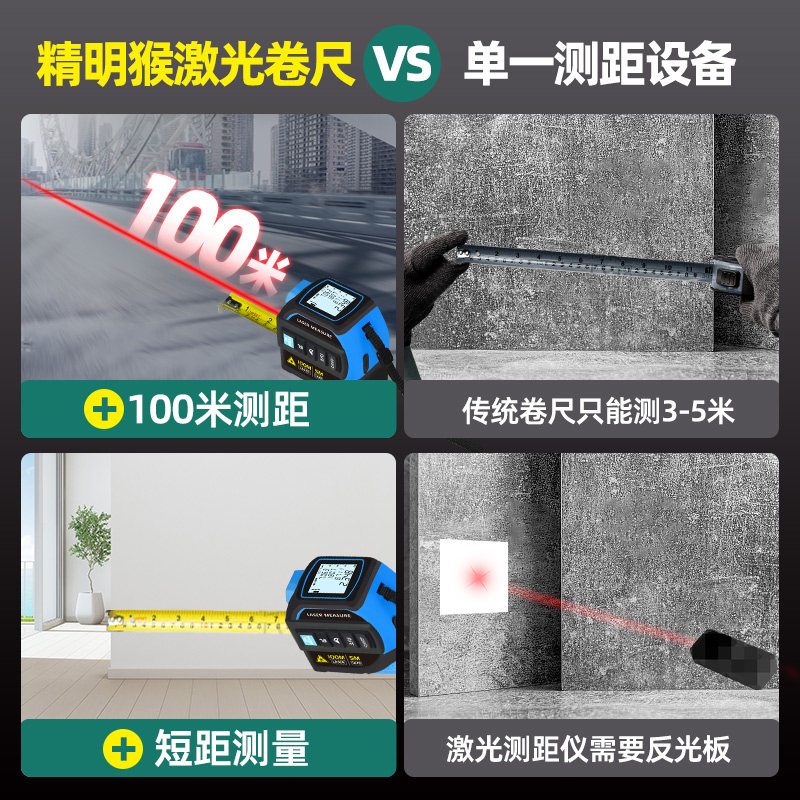 精明猴激光红外测距卷尺十字线5米钢卷尺工程验收测绘手持测量仪