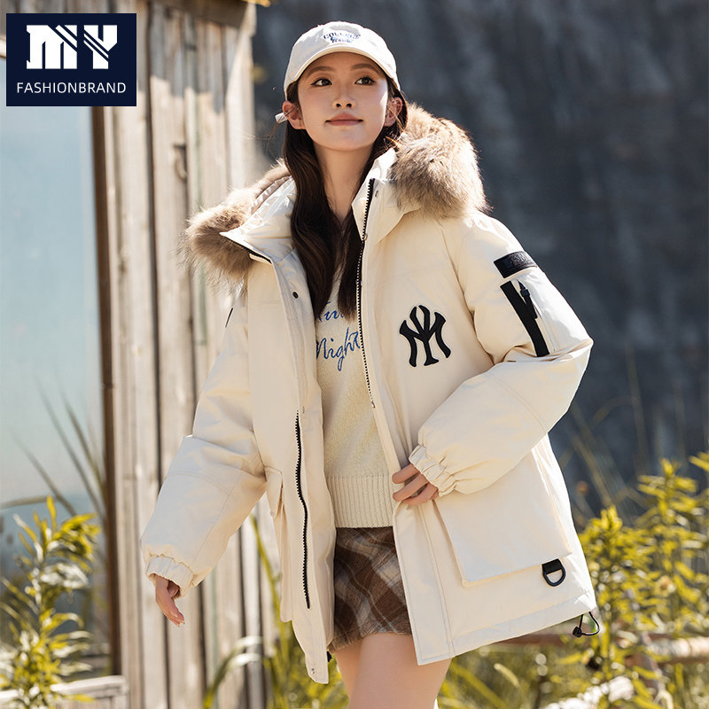 防风保暖宽松外套HT 2025冬情侣款 户外工装 大毛领羽绒服男女同款