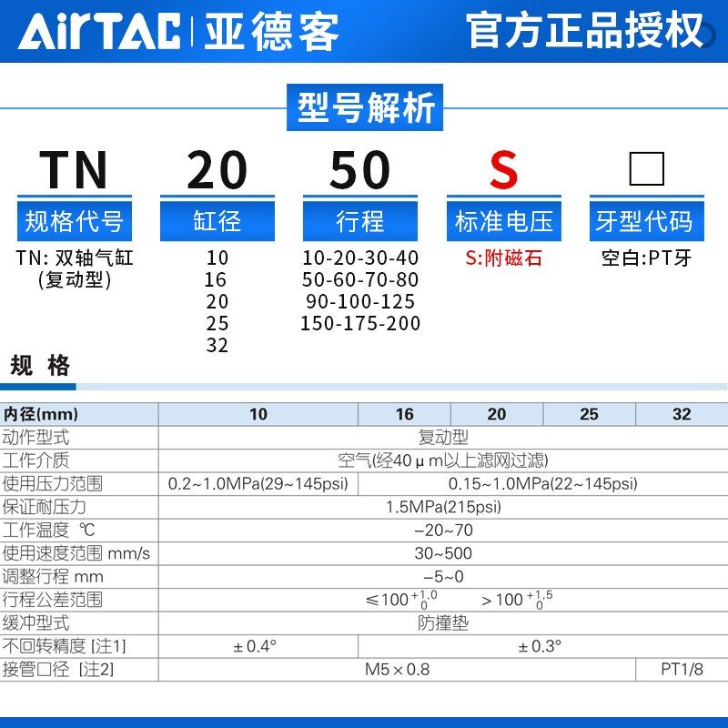 原装 亚德客双轴双杆气缸TN32X10X15X20X25X30X35X40X45X50X75 正品