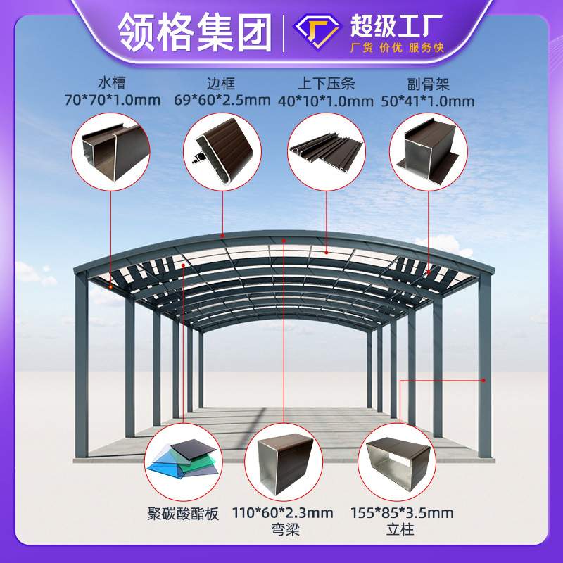 哇噢铝合金汽车棚小车充电桩车棚耐力板停车棚小区门头遮光车棚定