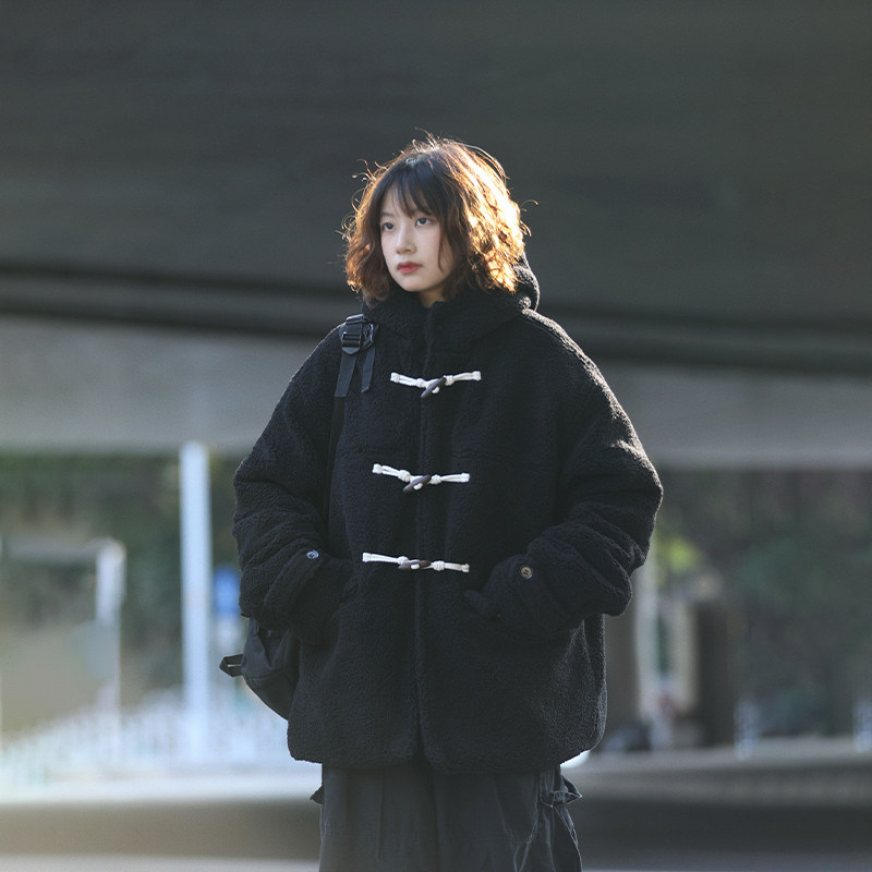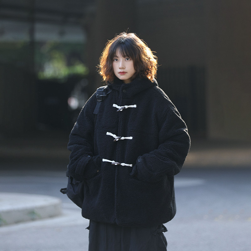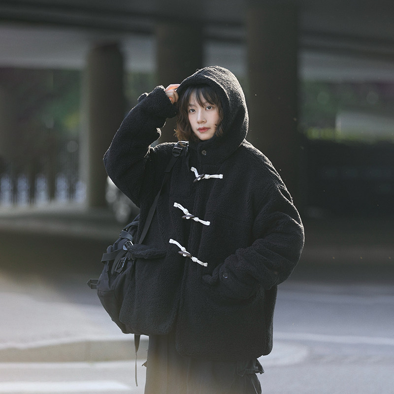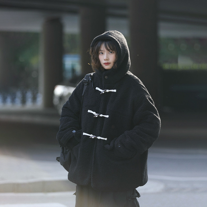 阿于呆原创复古牛角扣羊羔绒棉衣男新款 加厚保暖连帽棉服女潮 冬季