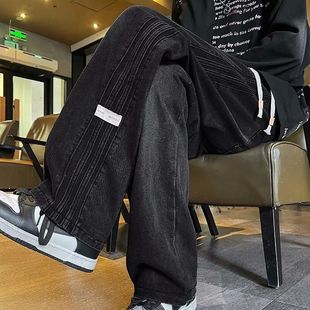 高街直筒阔腿裤 男秋冬加绒复古美式 微喇牛仔裤 120cm高个子加长版