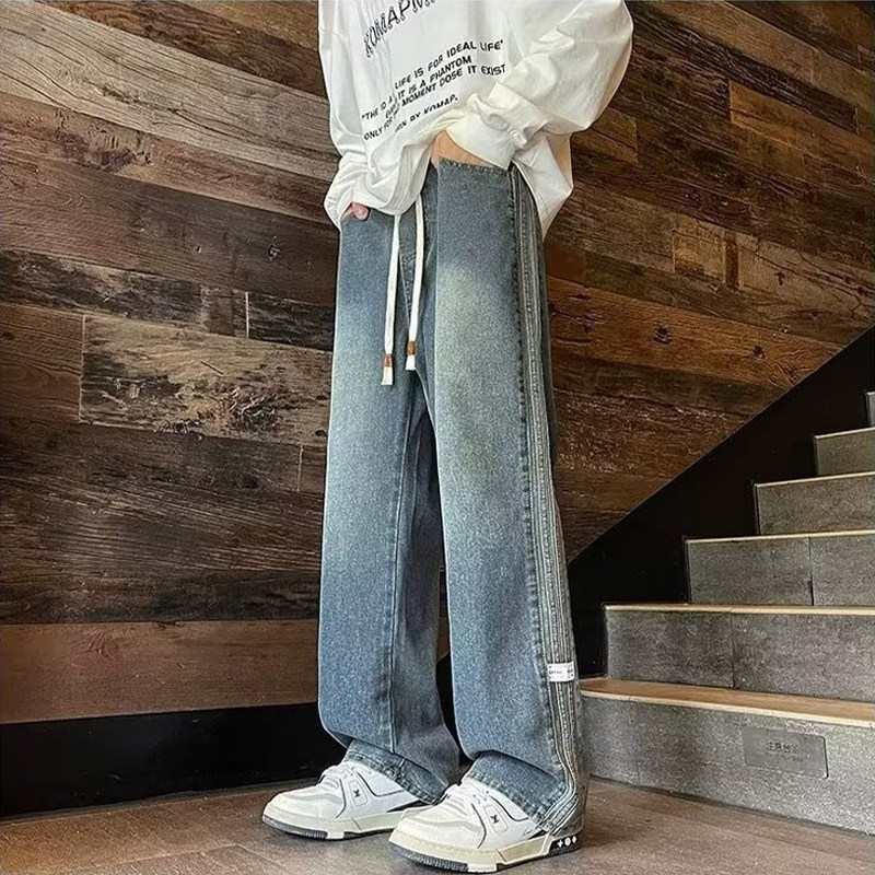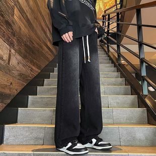 潮流复古抽绳简约情侣款 2025新款 牛仔裤 百搭男士 休闲微锥长B 时尚