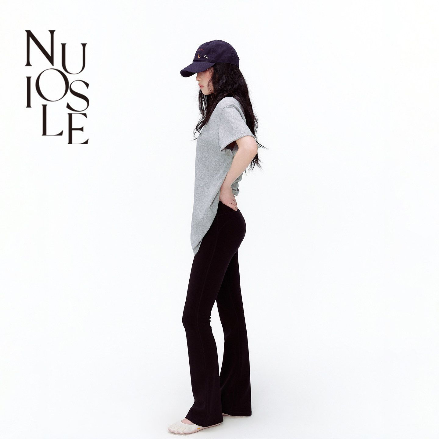 黑色显瘦轻薄桑蚕丝弹力微喇裤 NUOISLE 美丽与自由