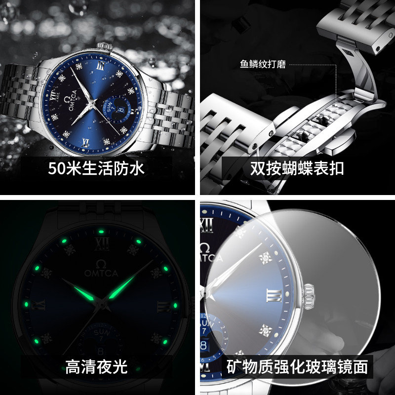瑞士名牌正品 商务超薄全自动潮流 手表男机械表夜光防水时尚