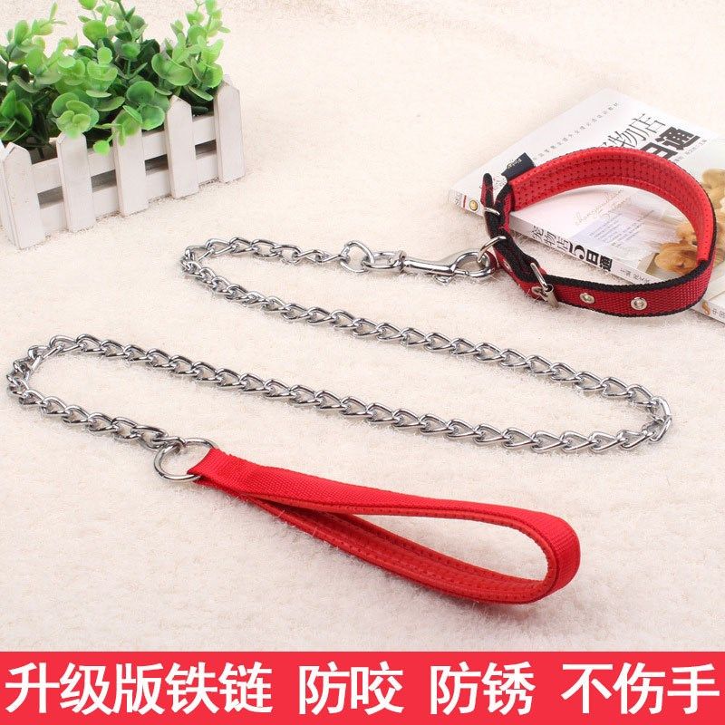 防咬狗狗牵引绳加长5米拴狗链条链子狗项圈铁链宠物用品脖套狗绳