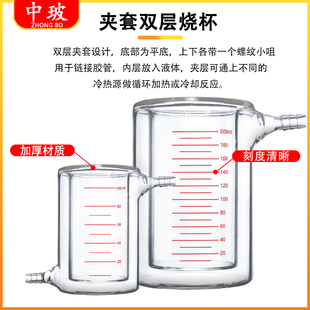夹套烧杯双层夹套玻璃烧杯厚壁刻度光催化酶反应器150 300ml 250