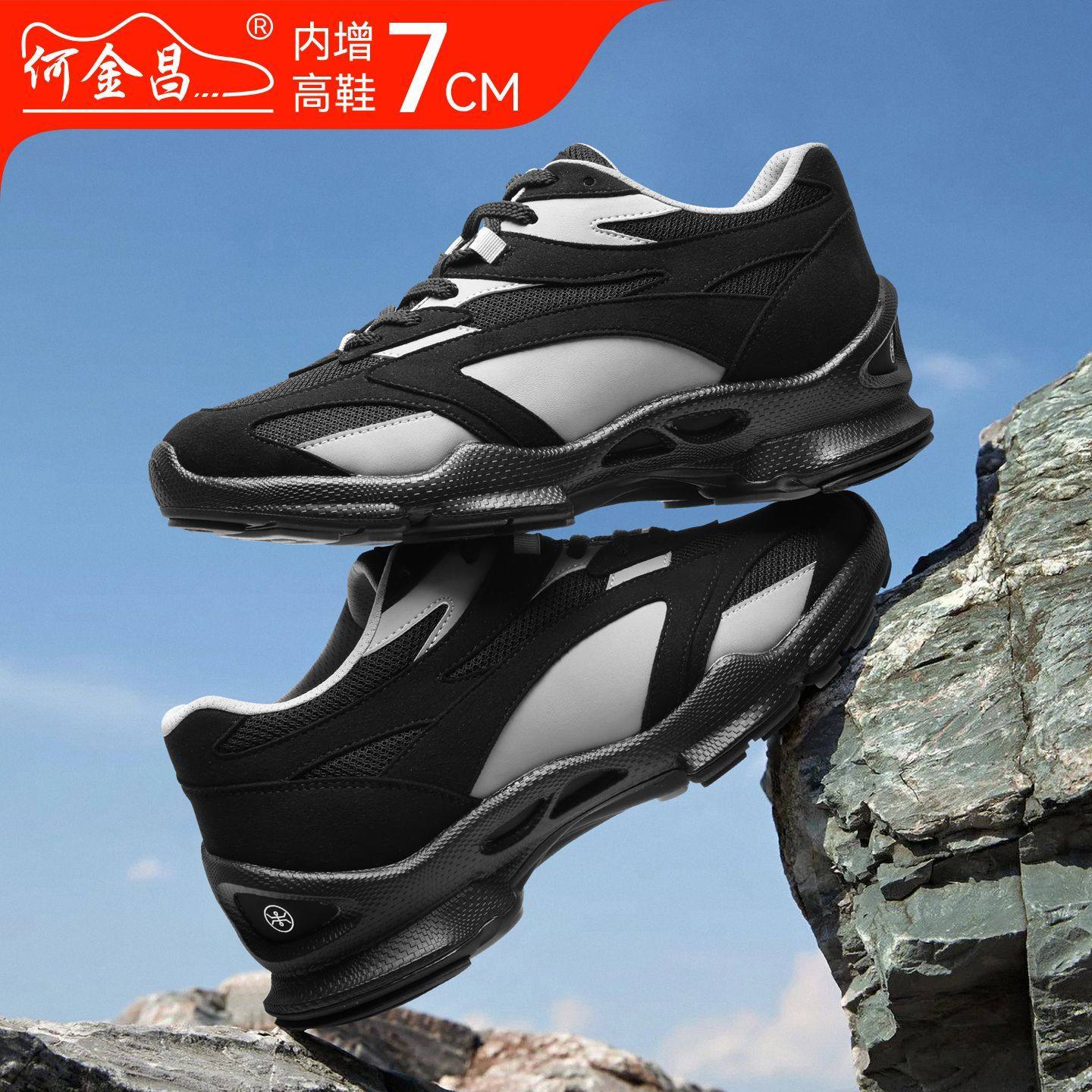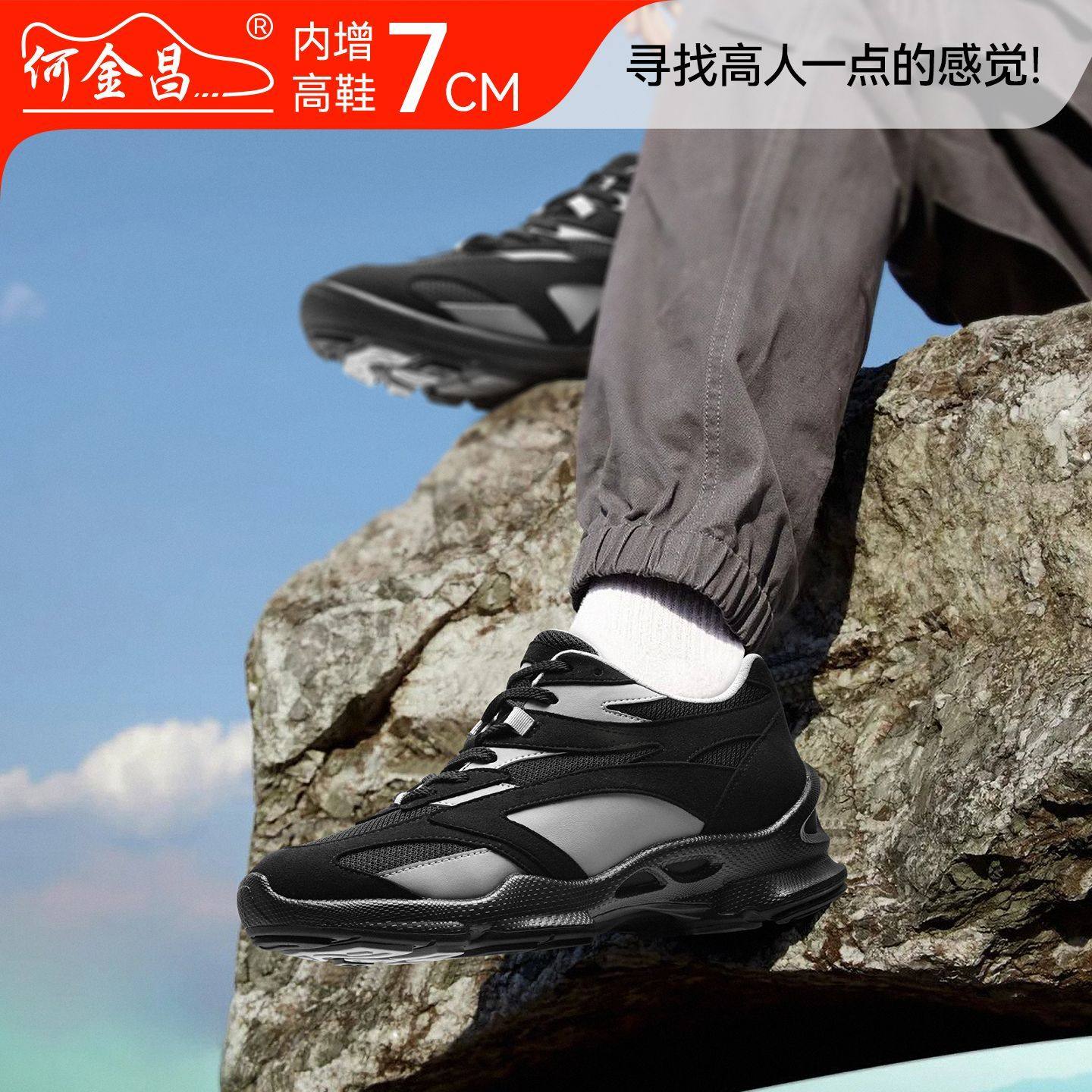 韩版 户外休闲鞋 拼色运动鞋 时尚 7CM 何金昌内增高鞋 百搭旅游鞋 男式