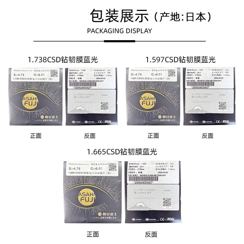 朝日富士日本进口镜片CSD钻韧防蓝光超薄AI变色镜片配近视眼镜2片