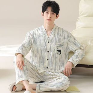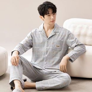 长裤 纯棉长袖 大码 家居服套装 猫人男士 全棉秋冬睡衣男款 睡衣秋冬款