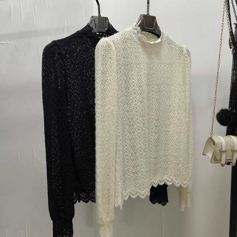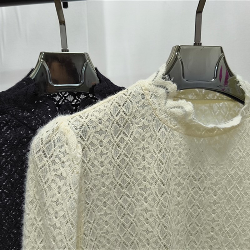 针织衫 弹力内搭长袖 胖MM杏色显白上衣百搭 蕾丝打底衫 2024秋冬大码