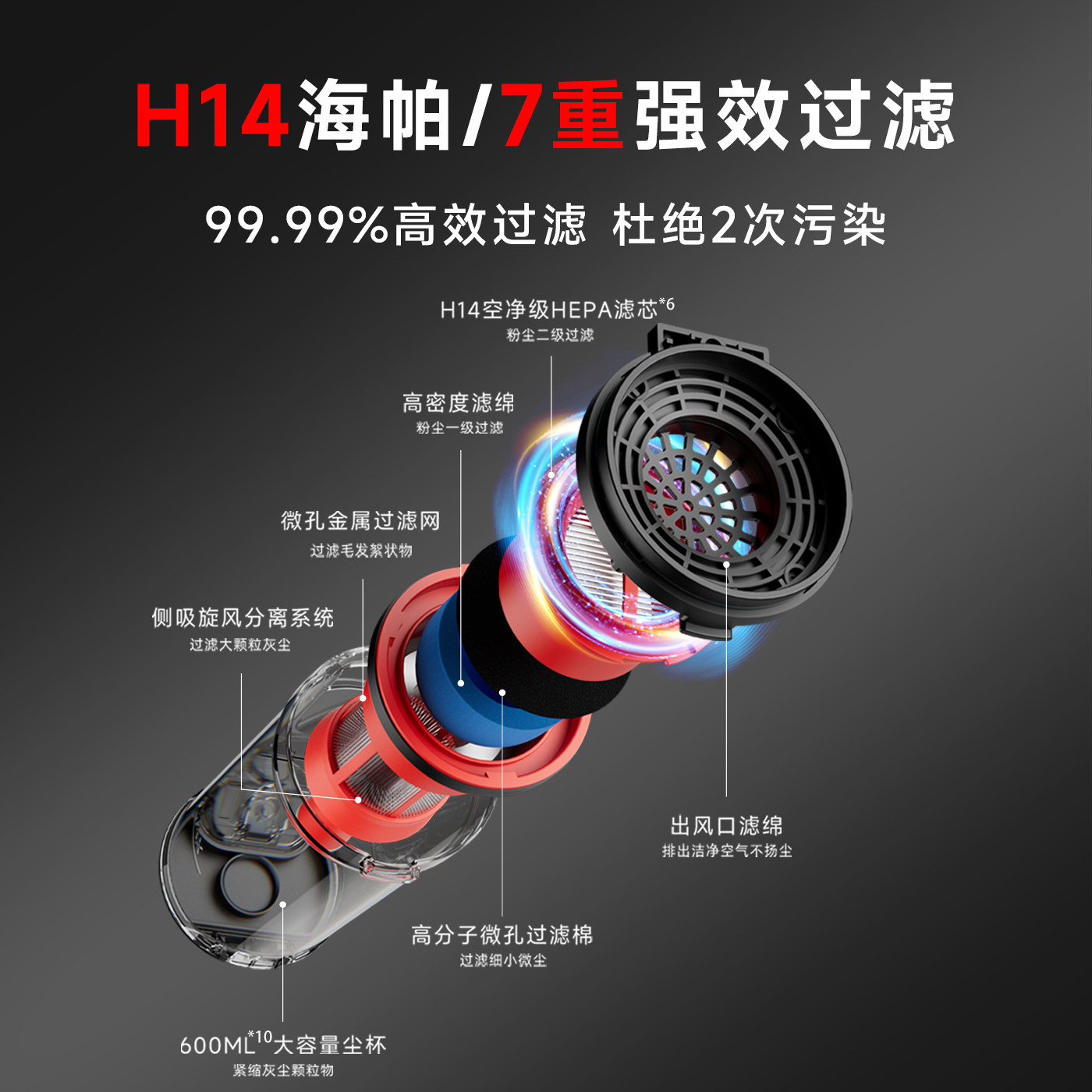 百吉诺吸尘器家用大吸力无线手持小型大功率地毯猫毛超静音一体机
