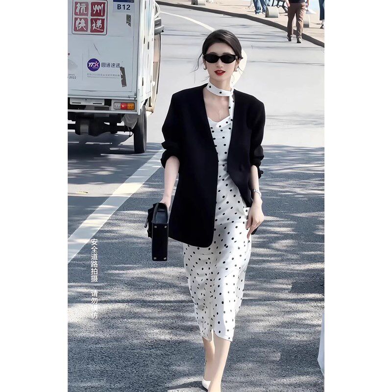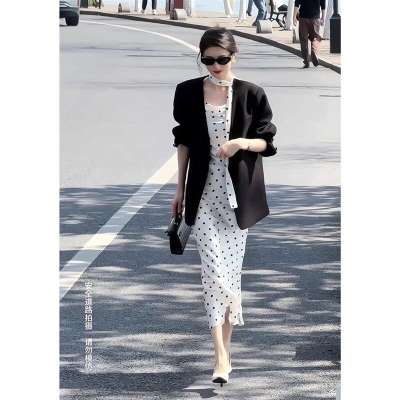 宽松西装 新款 外套波点连衣裙两件套 女2025春季 高级感气质干练套装