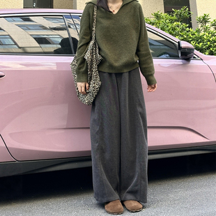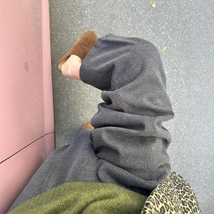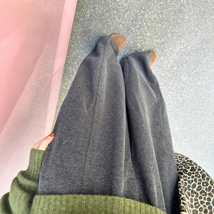 子女款 显瘦磨毛梧桐裤 冬季 胖mm大码 加厚休闲直筒裤 灰色毛呢阔腿裤
