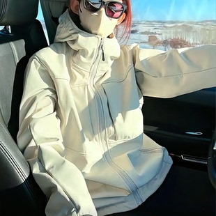 积能软壳冲锋衣女冬季 跑步防风外套户外登山服一体加绒运动夹克男